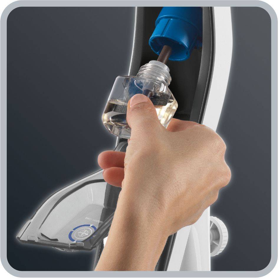 Avec Ultimate Protect, restez au frais et à l'abri des moustiques. Grâce à l'association intelligente d'un ventilateur à air froid et d'un répulsif liquide anti-moustiques, le ventilateur à pied Ultimate Protect combine une protection accrue contre les moustiques avec une diffusion optimisée dans toute la pièce. Compatible avec la plupart des flacons d'anti-moustiques disponibles sur le marché, la technologie liquide longue durée reste efficace pendant des semaines, en fonction de son utilisation. Parallèlement, trois vitesses réglables et l'oscillation automatique offrent une agréable sensation de fraîcheur. Le ventilateur est accompagné d'un mât télescopique pour ajuster facilement la hauteur, ainsi que d'une grille pour la protection des enfants.