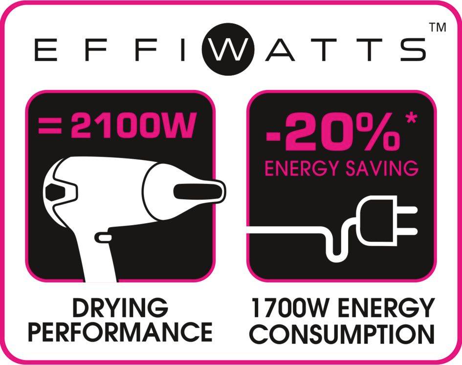Avec le Calor Studio Dry, une efficacité de séchage exceptionnelle est à la portée de vos mains, vous permettant de créer de superbes coiffures avec une maîtrise parfaite. Ce sèche-cheveux facile d'utilisation offre une performance de séchage de 2 100 Effiwatts qui boostent l'efficacité de vos séances de séchage, tout en consommant 20 % d'énergie en moins*. Le concentrateur Triple Air Précision fournit un débit d'air précis, vous permettant de maîtriser totalement le coiffage, tandis que les 3 réglages vitesse/température vous permettent d'adapter le débit d'air et la température pendant le séchage. Ce sèche-cheveux haute efficacité est doté d'une variété de fonctionnalités avancées pour un coiffage sans effort et pratique. Pour la parfaite touche finale, un touche air froid fixe la coiffure pour des résultats durables. Calor Studio Dry : un séchage efficace et une coiffure parfaite.