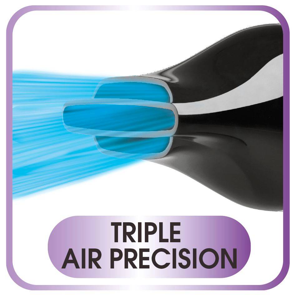 Le sèche-cheveux Studio Dry est efficace, ultra-compact et doté d'un concentrateur Triple Air Precision permettant un débit d'air ultra-précis. Sa puissance de 2 100 W offre un résultat rapide et efficace tandis que son générateur d'ions garantit des cheveux lisses et maîtrisés à la brillance éclatante. Grâce à ses 3 réglages, la température du débit d’air s’adapte à votre type de cheveux, pour un contrôle absolu pendant le séchage. La touche Air froid fixe la coiffure à la fin du séchage pour un résultat longue durée. Le concentrateur offre une précision inégalable et un fini parfait, tandis que le diffuseur permet d’obtenir des boucles pleines de volume et bien définies.