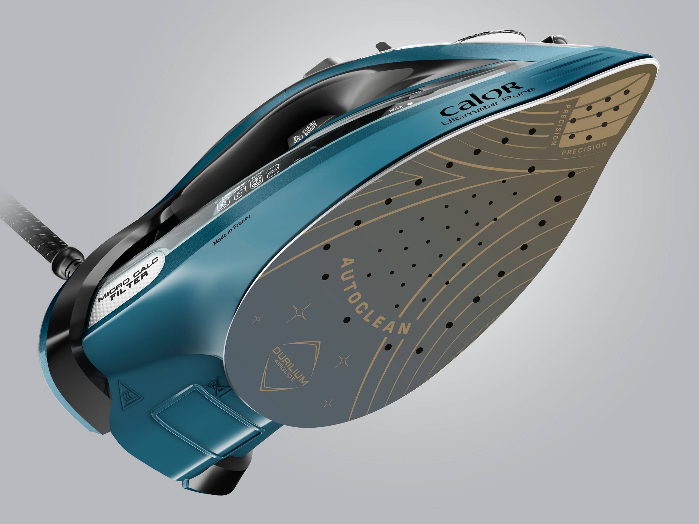 Fer vapeur haute performance : puissance de 3 200 W pour une chauffe rapide, un débit vapeur continu élevé et une fonction pressing intense La technologie de semelle AutoClean empêche l'accumulation de résidus, pour limiter l'entretien Notre technologie de filtre Micro Calc brevetée empêche les taches et protège totalement vos vêtements et votre linge N° 1 de Calor en termes de glisse*, notre semelle offre des performances d'exception, un repassage fluide et une résistance aux rayures Gardez vos tissus et vêtements toujours impeccables et sans tache avec la protection anti-goutte Fonction d'arrêt automatique de sécurité pour une sérénité totale jour après jour Défroissage vertical facile pour les pièces délicates et de grande taille, telles que les rideaux, et idéal pour les retouches de dernière minute Une pointe de précision bien pensée permet d'atteindre facilement les zones difficiles d'accès, telles que les bordures étroites, les coutures et les cols