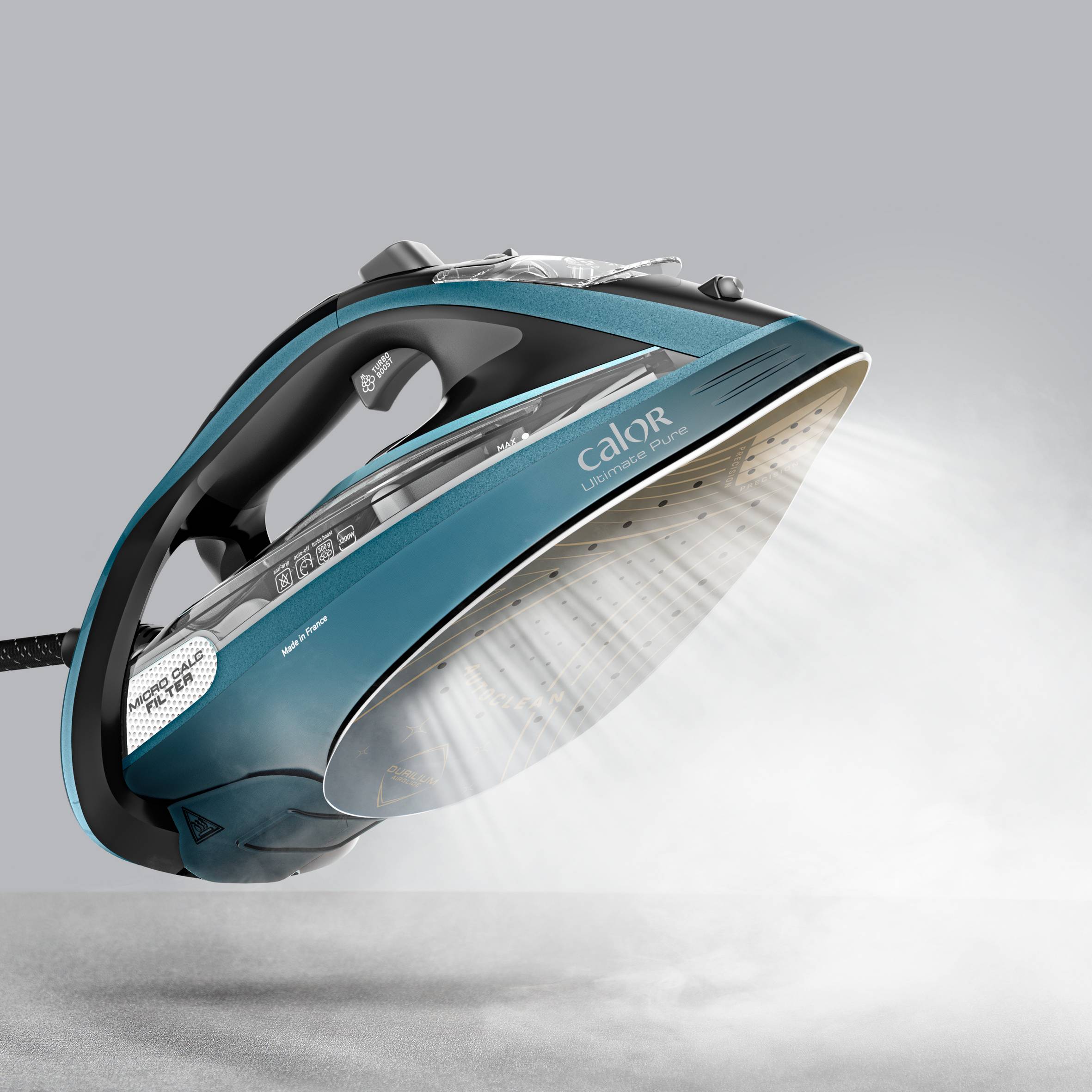Ultimate Pure est équipé de notre technologie de filtre Micro Calc brevetée, une innovation 2-en-1 qui élimine le calcaire** et purifie la vapeur pour un repassage impeccable. Son fonctionnement est le suivant : la vapeur non purifiée traverse le filtre, qui capture toutes les particules de calcaire*, aussi infimes soient-elles, avant de diffuser une vapeur pure et intégralement filtrée.
