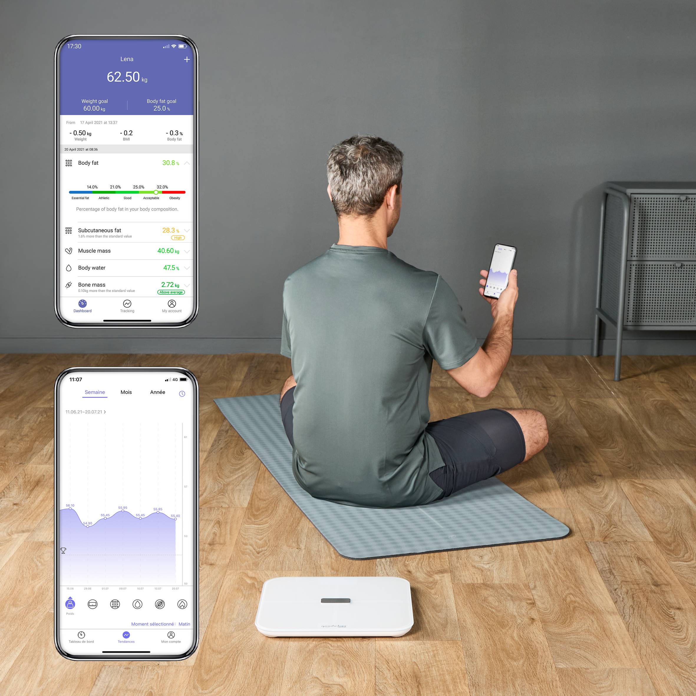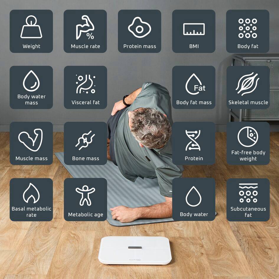 Suivez votre composition corporelle pour rester en forme ! Avec le pèse-personne connecté Goodvibes Sport, obtenez une analyse complète avec 17 indicateurs corporels, accessibles via l'application Goodvibes intuitive. Apprenez à connaître votre corps, suivez votre évolution, définissez des objectifs et obtenez des résultats facilement. Avec un nombre illimité d'utilisateurs, il est parfait pour garder la forme avec votre famille et vos amis.