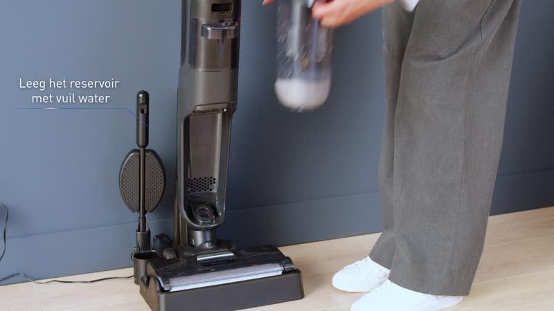 - Handsfree zelfreinigend systeem met één druk op de knop zodat je stofzuiger altijd klaar is wanneer nodig