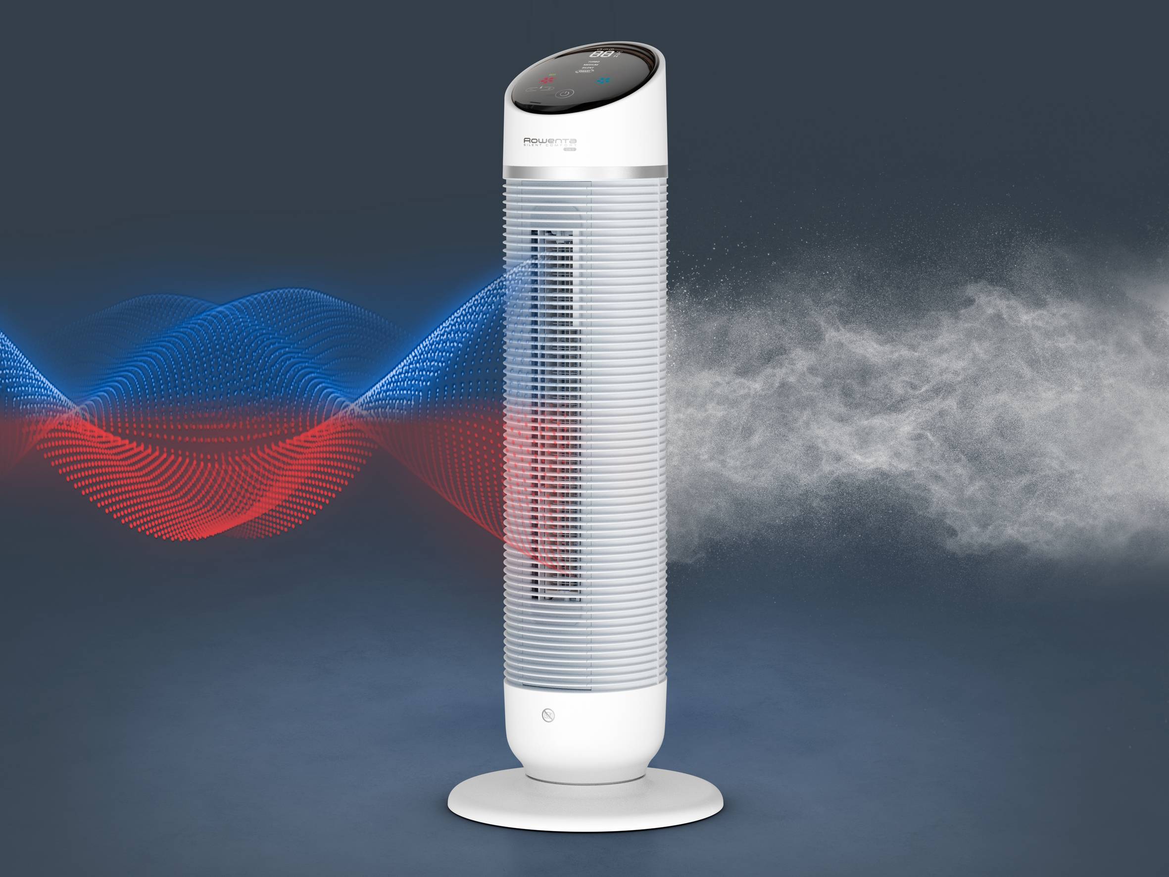 Geniet het hele jaar door van optimaal comfort met de Silent Comfort 3-in-1, een combinatie van een kolomventilator met verwarming waarbij de lucht gefilterd wordt en u een aangename verkoeling en verwarming geboden wordt. Dankzij de Air Filtration-technologie worden grote stofdeeltjes, dierenharen en fijne partikels tot wel 500 micron opgevangen en gefilterd, en worden langdurige prestaties bekomen. De Silent Comfort 3-in1 brengt u verkoeling in alle stilte (38 dB(a) op de ventilatorstand) en verwarmt uw kamer snel en geruisloos (2400 W) in de winter. De Smart-functie detecteert de kamertemperatuur voor meer comfort en past automatisch het vermogen aan om de gewenste temperatuur te bereiken en te behouden, wat op zijn beurt het energieverbruik vermindert. De Eco-verwarmingsstand verbruikt tot 50% minder energie*, een zuinig toestel om de energiekosten mee te drukken. De oscillatiefunctie van 70° zorgt voor een betere verdeling van de lucht in de kamer, de timer met automatische uitschakelfunctie en de uitgestelde startfunctie tot 24 uur helpen u alles in te stellen, het extra grote aanraakscherm met afstandsbediening maakt het makkelijker te bedienen, zelfs vanop afstand. *In vergelijking met de temperatuurstand op vol vermogen