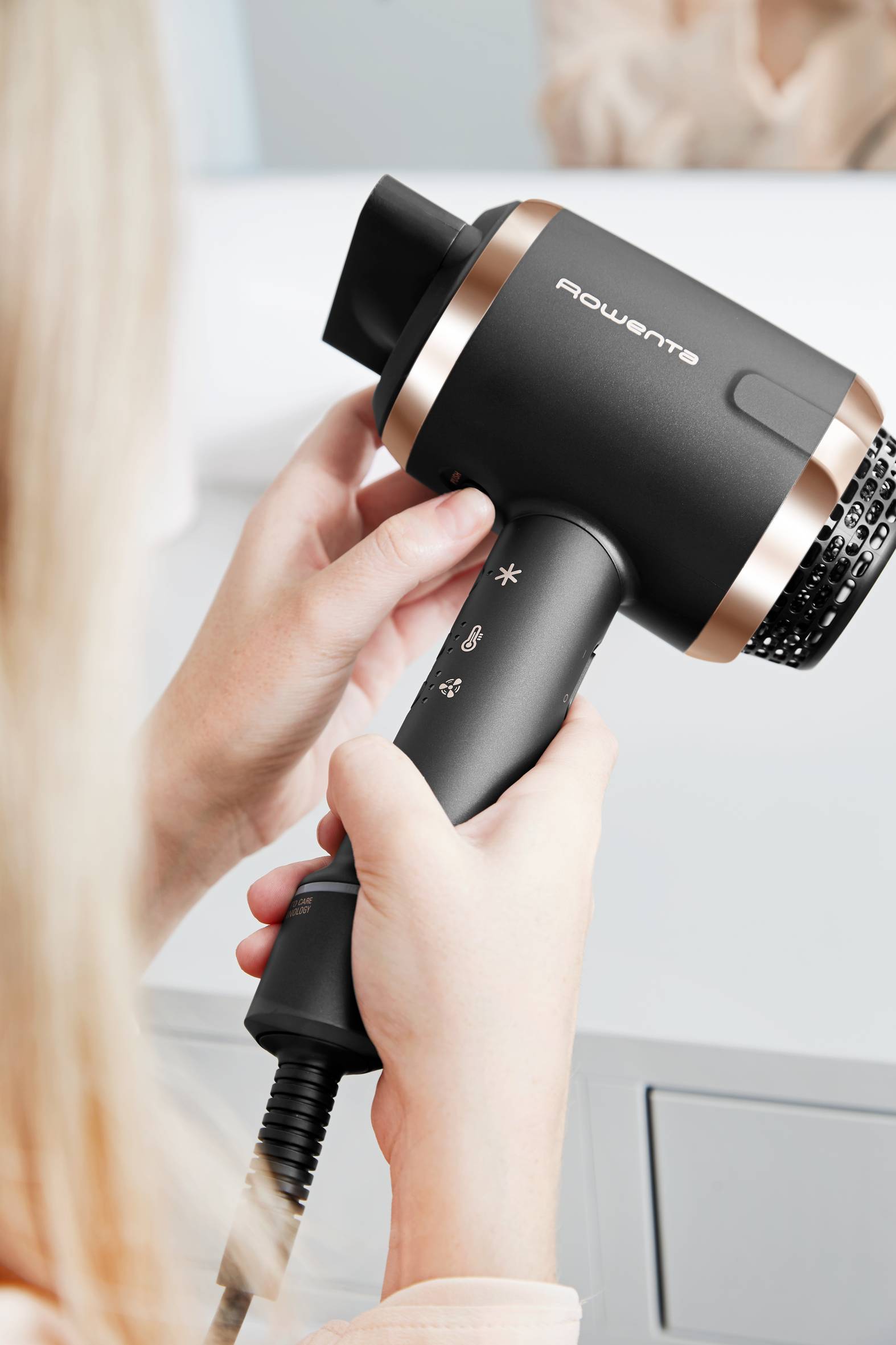 De Rowenta Ultimate Experience haardroger zorgt voor een uitzonderlijk verzorgingsniveau en prachtige resultaten, met al het gemak en de ongeëvenaarde prestaties van een hoogwaardige haardroger. De nieuwe Air-To-Care technologie biedt een tweevoudige ionenverzorging om te helpen beschermen tegen stof en vervuiling, terwijl het de natuurlijke schoonheid van je haar stimuleert en het een langdurige glans bezorgt. Het exclusieve Switch & Style System van deze haardroger houdt ingebouwde hulpstukken altijd binnen handbereik, zodat je met één klik van drogen naar styling kunt overschakelen. Ontdek de perfecte mix van verwennerij en prestaties: drie snelheids- en temperatuurinstellingen om de luchtstroom en warmte aan te passen aan het haartype, verbeterde ergonomie voor uitzonderlijk comfort en meer. Verwen jezelf, dag in dag uit, met deze ultieme professionele haardroger met premium koude luchtstoot als de perfecte aanvulling voor langdurige resultaten.