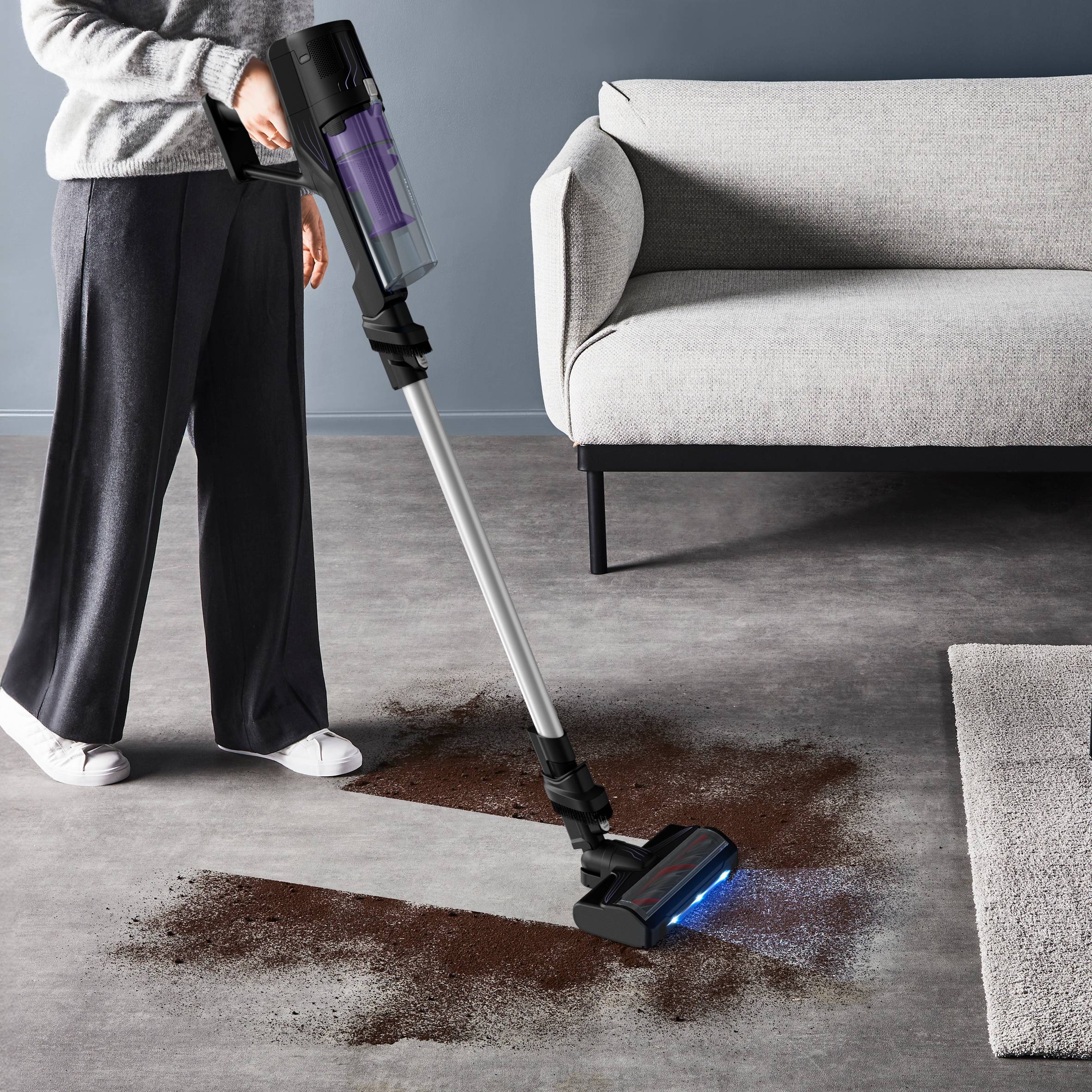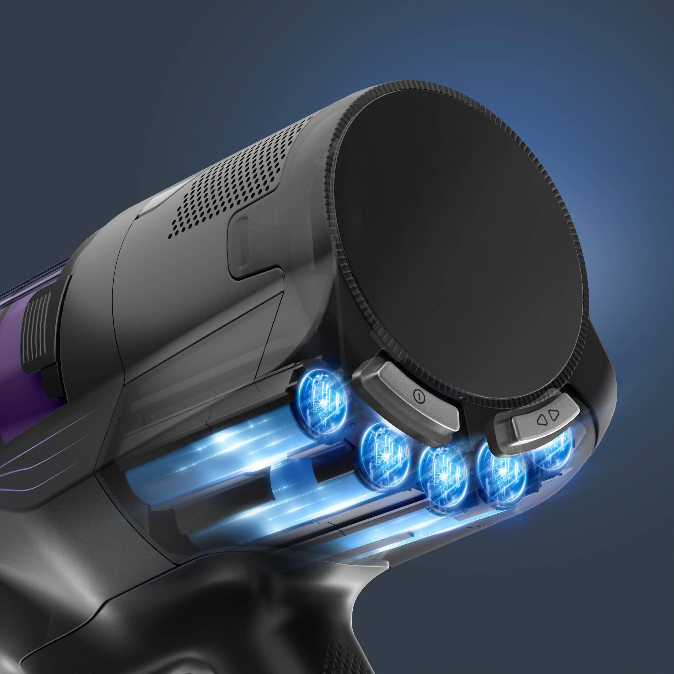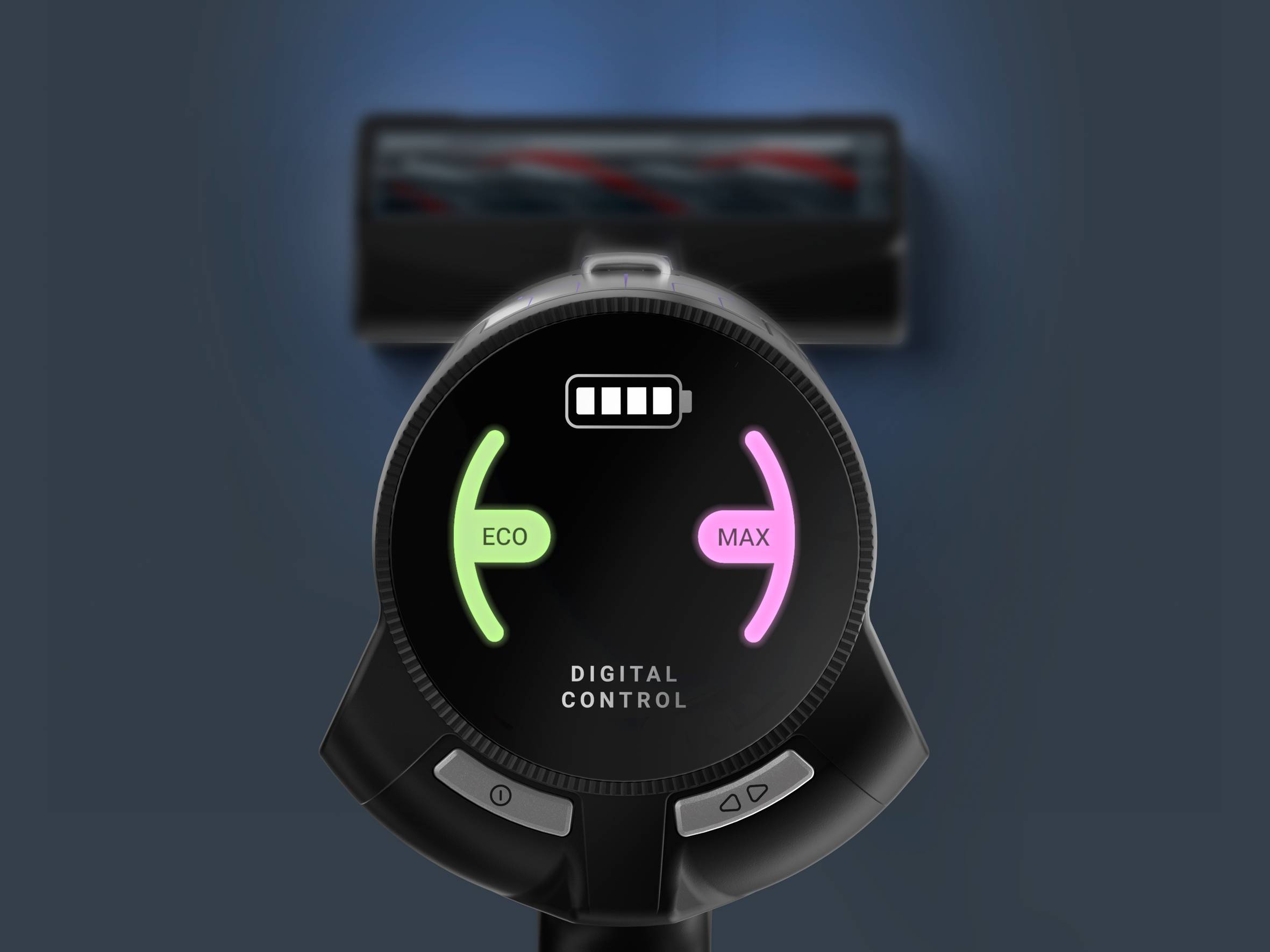 Ons baanbrekende digitale bedieningssysteem zorgt voor een unieke schoonmaakervaring. Het moderne Smart Control Display geeft het zuigvermogen (ECO/MAX) aan, toont het resterende batterijniveau om je schoonmaakbeurt optimaal te plannen, en stuurt waarschuwingen en een QR-code wanneer het tijd is voor onderhoud.